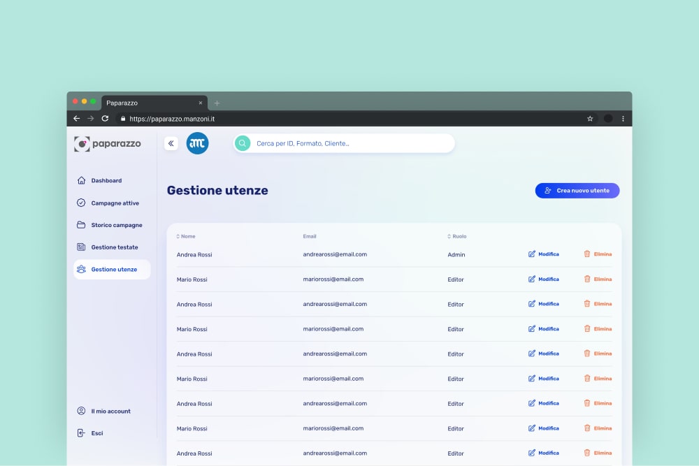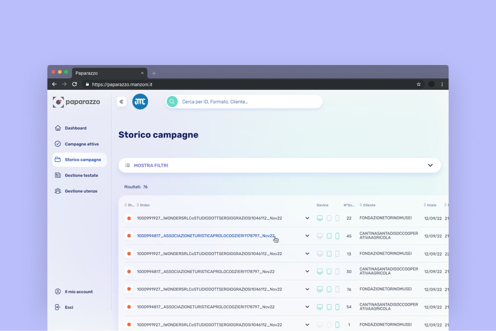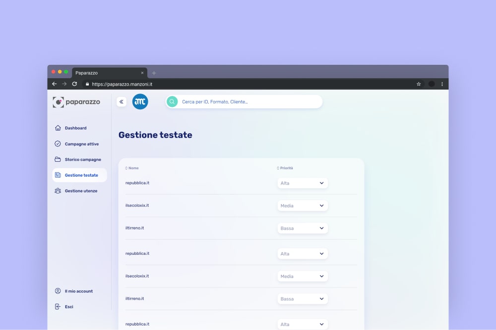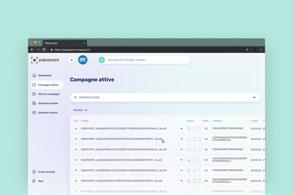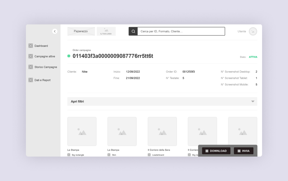 Sass per editori online, in grado di analizzare, gestire e inviare report su campagne pubblicitarie attive e passate.