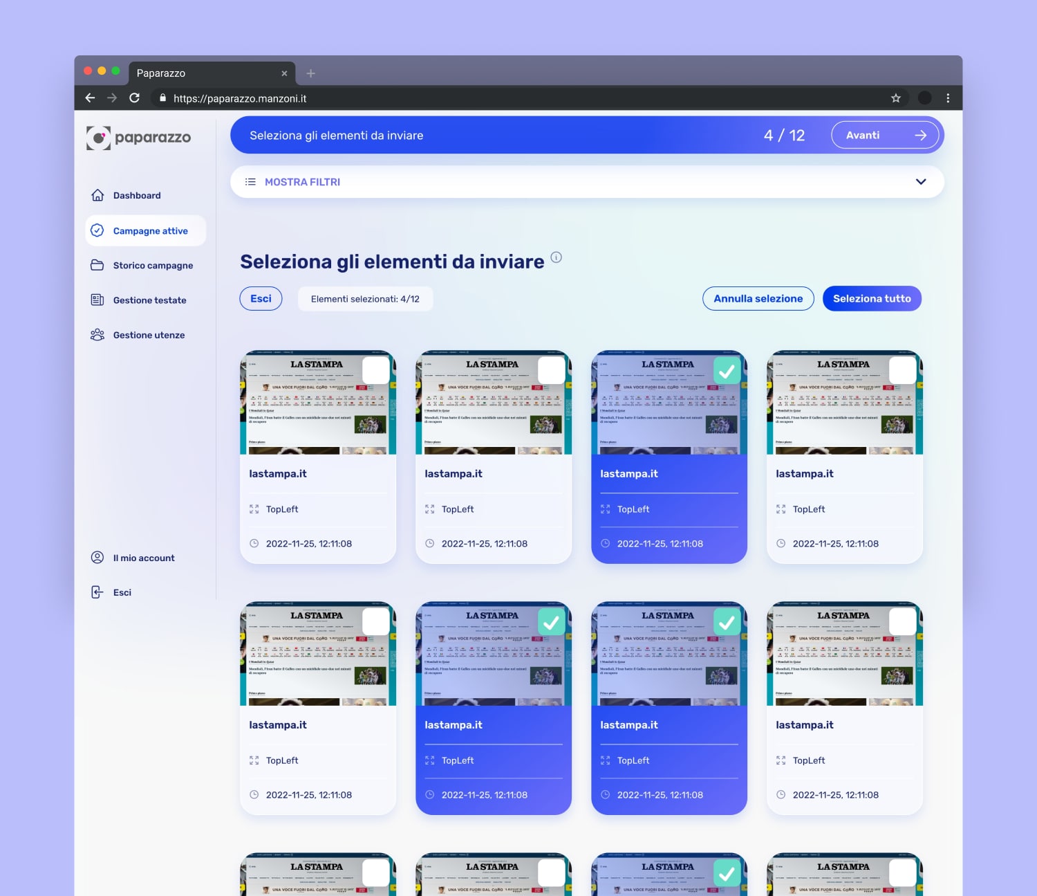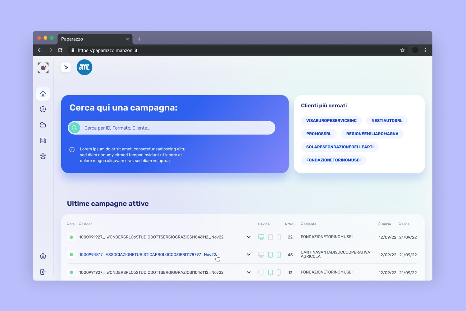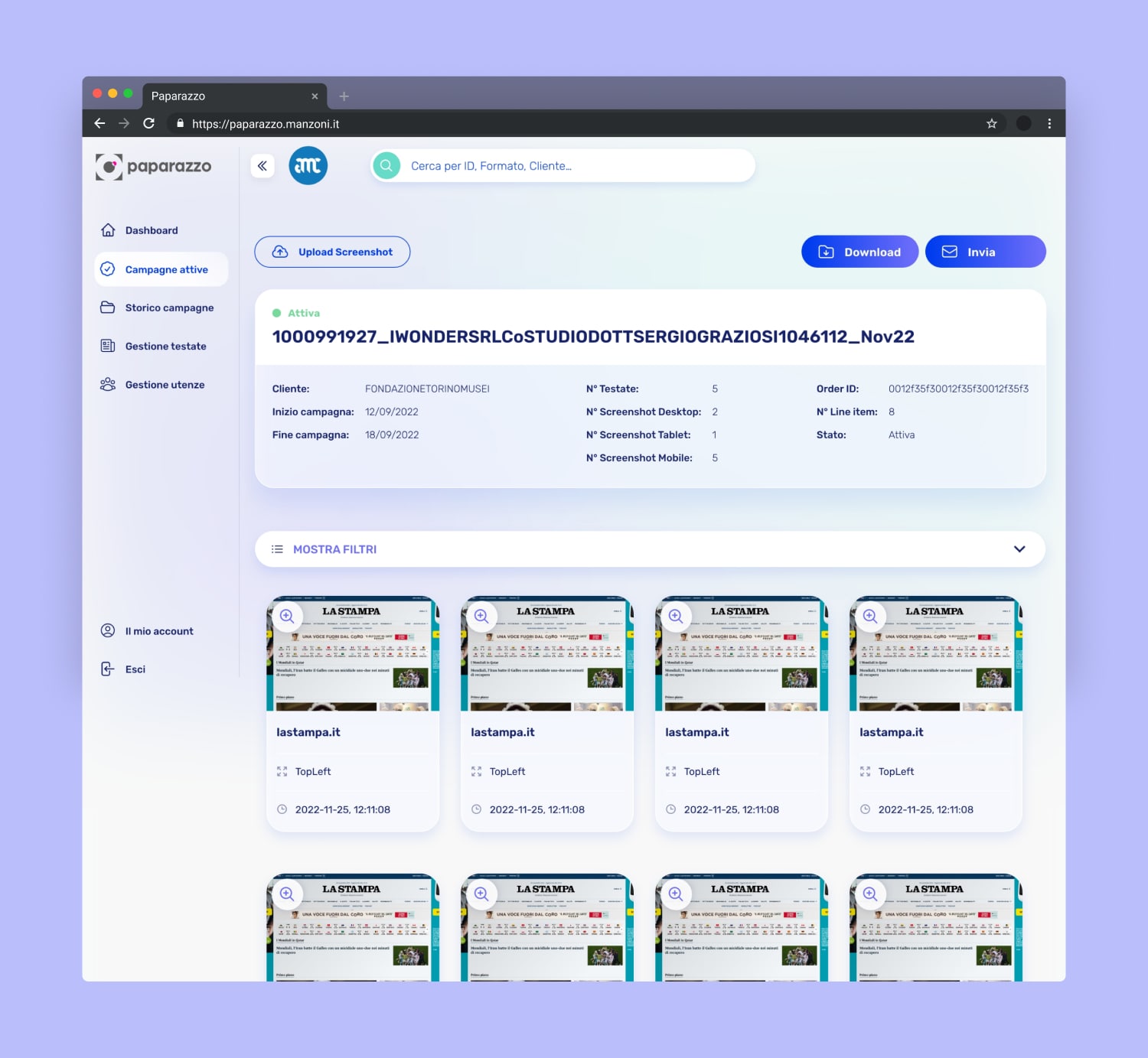 Sass per editori online, in grado di analizzare, gestire e inviare report su campagne pubblicitarie attive e passate.